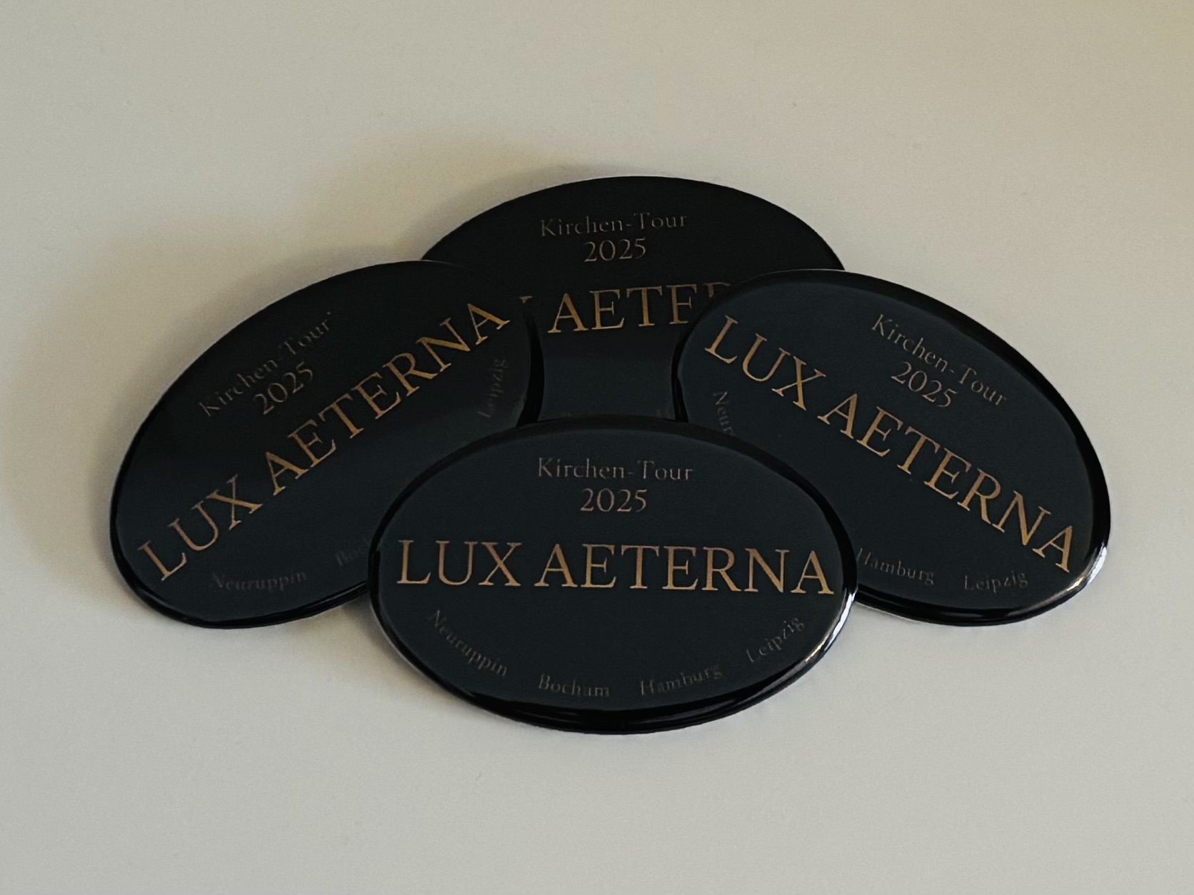 - schwarz, goldene Schrift - mit den 4 Städten zur Lux Aeterna Tour - ca. 7 x 4,5 cm groß