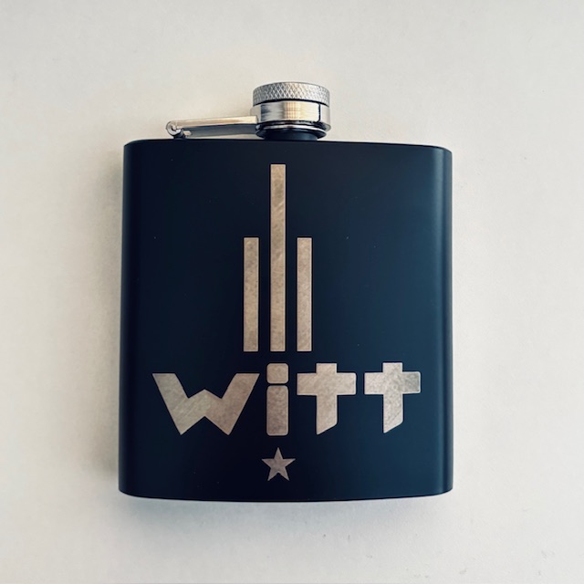 - schwarzes Echtmetall - Logo graviert auf Vorderseite - knapp 170ml Fassungsvermögen - 111 mm Höhe - 93 mm Breite - etwa 30 mm Tiefe - Gewicht ca. 90 g - Schraubdeckel ist fest mit dem Korpus verbunden